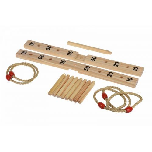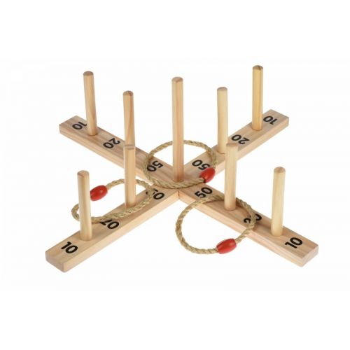 Виріб у вигляді яскравого набору з хрестоподібної конструкції-основи зі стрижнями і цифрами, 5 мотузкових кілець для закидування. Гра розвиває дрібну моторику, логіку, мислення, посидючість, увагу.