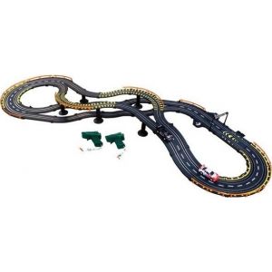 Також в комплект входить вимірювач швидкості Довжина треку -389 см. Управління машинками відбувається через пульти управління, які приєднуються до автотреку.