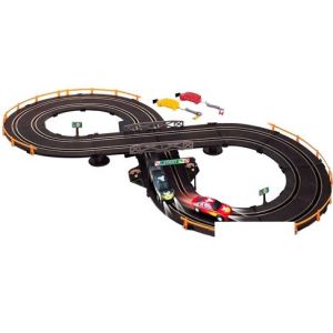 Довжина треку - 232 см. Управління машинками відбувається через пульти управління, які приєднуються до автотреку.
