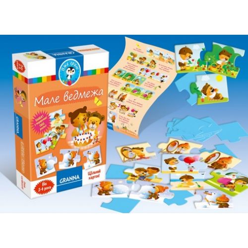 У малого ведмежатка багато справ. Він будує замки з піску, святкує день народження, влаштовує пікнік на галявині – і це тільки декілька прикладів! Гра «Мале ведмежа» вчить дітей упорядковувати зображення так, щоб можна було розповісти зв’язну історію.