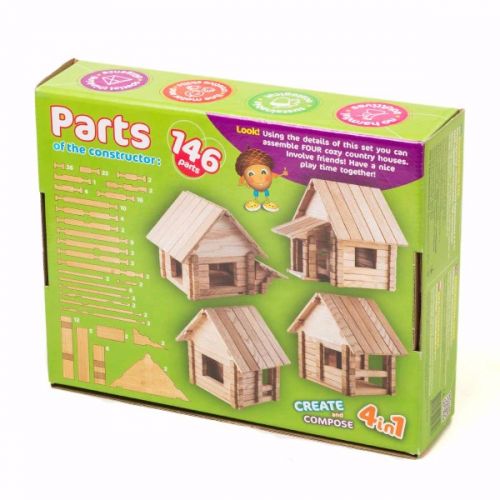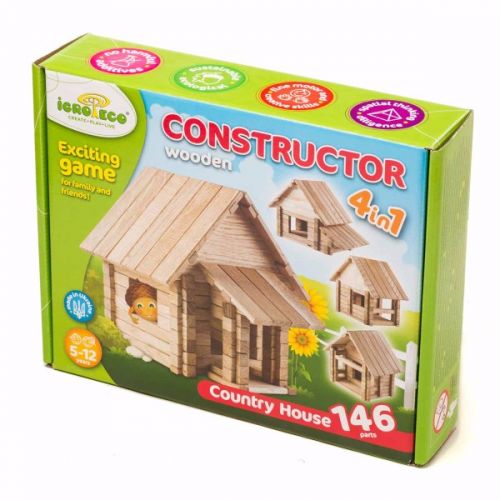 Дерев’яний конструктор ЗАМІСЬКИЙ БУДИНОК - дозволить вашій дитині побудувати своїми руками свою власну хатинку за містом, та використовувати її для своїх ігор.