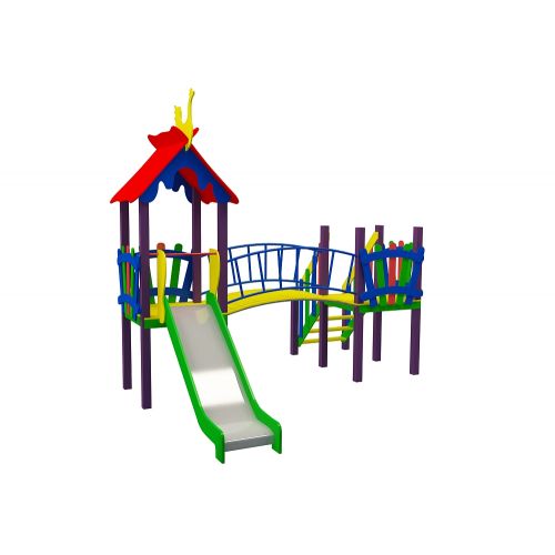 Багатофункціональний дитячий комплекс складається з вежі, місточка-переходу і дитячої металевої гірки. За бажанням комплекс можна доповнити додатковими елементами.