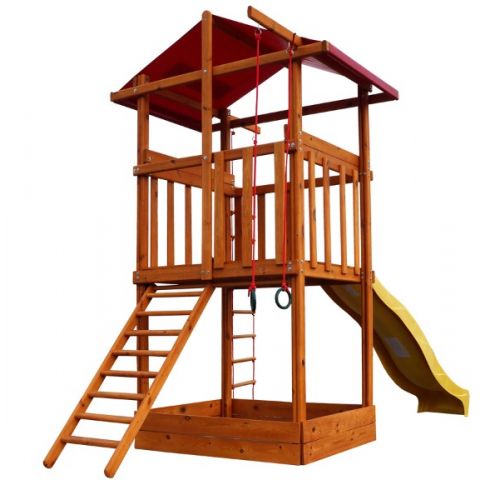 Ігровий дитячий майданчик Babyland-1 - це оригінальний дитячий двох'ярусний будиночок зі сходами, гіркою і пісочницею. Виготовлений з натурального дерева сосни - екологічного, практичного і довговічного матеріалу, що забезпечує максимальний комфорт в процесі експлуатації.