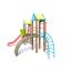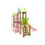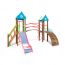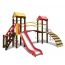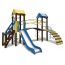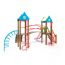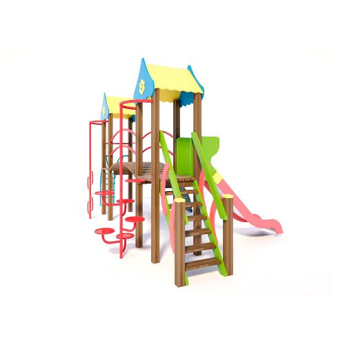 Каркас ігрового комплексу зроблений з металу, а накладки з водостійкої фанери, які покриті фарбою, що стійка до кліматичних змін.