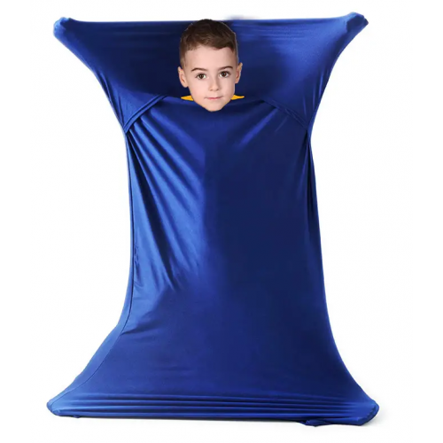 Мішок виготовлений з міцного та еластичного матеріалу, що витримує розтягування та не деформується. Він має міцне шиття та призначений для тривалого використання. Його дизайн спрощує одягання та знімання і комфортний для дитини, залишаючи голову відкритою для збереження відчуття простору та позитивних результатів навчання.
