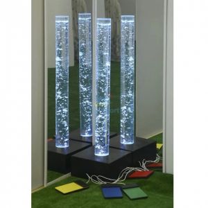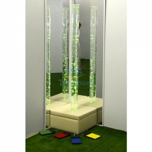 Бульбашковва колона для сенсорної кімнати з квадратним пуфом внесе у життя дитини трохи чаклунства. Пухирці допомагають розслабитися. Колона розвиває у дитини тактильне та візуальне сприйняття, сприйняття кольорів, а також покращити увагу.