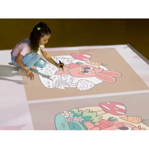 Інтерактивна підлога дозволяє взаємодіяти з проекційним зображенням на підлозі. Завдяки компактним розмірам і легкості установки, цей інтерактивний прилад може бути встановлений під стелею.