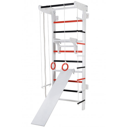 Спортивний куточок на основі шведської стінки - виріб, який повністю відповідає виразу "все геніальне - просто". Шведська стінка дійсно універсальний спортивний снаряд, який може бути встановлений в будь-якому місці, будь то спортивний зал, квартира або ж просто на вулиці. Вже не перше століття використовується шведська стінка, але до сих пір вона вважається найбільш функціональним спортивним тренажером. Дуже зручна шведська стінка і тим, що на неї можна встановлювати додаткові компоненти: турніки, бруси, дошку або лаву для пресу і спини, повісити боксерську грушу а також дитячий мотузковий набір - кільця, канат, трапецію, драбинку та інше. І при всіх своїх перевагах такий спортивний куточок буде займати мінімум місця.
