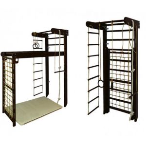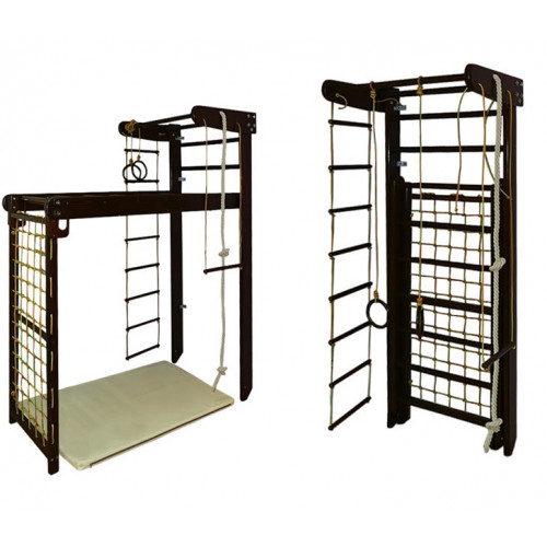 | Комплектація | шведська стінка з верхнім турніком; мотузковий набір (кільця, канат, трапеція, мотузкова драбинка); рукоход; гладіаторські сітка для лазіння |