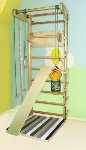 Є можливість також укомплектувати спортивний куточок справжньою дитячою гіркою, катання на якій принесе малюкам величезне задоволення.