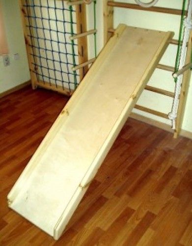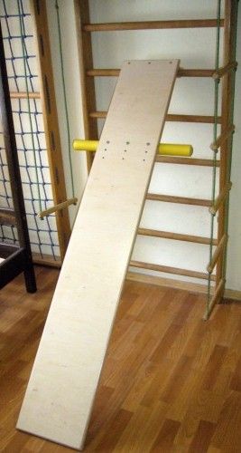 Похила дошка найменшими "спортсменами" використовується як гірка. Батьки ж можуть запропонувати дитині ходьбу по похилій дошці, як прекрасна вправа для зміцнення склепіння стопи. Лежачи на спині і тримаючись за перекладину шведської стінки руками дитина може робити прості вправи для розслаблення хребта: "велосипед", нахили зігнутих ніг в сторони, а перевернувшись на животик, підтягуватися руками і з'їжджати вниз по дошці й весело та корисно. Займаючись на похилій дошці, ви розправляєте хребет під вагою власного тіла, природним шляхом домагаючись нормального стану міжхребцевих дисків, і усуваючи защемлення нервових закінчень.