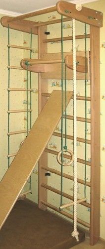 Спортивний куточок на основі шведської стінки - геніальний винахід. Це універсальний спортивний снаряд, який може бути встановлений в будь-якому приміщенні. Дуже зручна шведська стінка тим, що на неї можна встановлювати різне додаткове спортивне обладнання, поступово формуючи домашній спортивний куточок, який може складатися з таких компонентів, як: шведська стінка, турнік, бруси, дошка або лава для пресу і спини, кільця, канат, трапеція, мотузкова драбина, боксерська груша та інше. І при всіх своїх перевагах такий спортивний куточок буде займати мінімум місця.