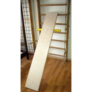 Дошка для преса і спини з упорами для ніг підходить для занять по розправленими хребта під вагою власного тіла, природним шляхом домагаючись нормального стану міжхребцевих дисків, і усуваючи защемлення нервових закінчень. Найменші діти можуть використовувати дошку, як гірку. Підійде для шведської стінки заввишки 210 см, 225 см, 240 см. За допомогою цього доповнення, можливо збільшити кількість вправ і навантажень для фізичного розвитку дитини. Призначається при лікуванні, яке включає інші види реабілітаційних процедур. Використовується для тренування в спортзалах, лікування і реабілітації в кабінетах лікувальної фізкультури, а також в домашніх умовах. Покритий водорозчинних лаком, схвалений Міністерством охорони здоров'я України та мають наступні переваги: не має запаху; екологічно чиста водорозчинна композиція акрилових; латексів з стабілізуючими; стійкий до вологи, воді та миття побутовими хімікатами; витримує покриття органорозчинуючі лаків; плівка стійка до УФ-випромінювання; захищає деревину від біологічного руйнування; рівномірно стійкий до механічного стирання; через час не міняє колір плівки і поверхню деревини.