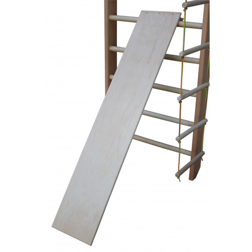 Дошка для преса і спини підходить для занять по розправленими хребта під вагою власного тіла, природним шляхом домагаючись нормального стану міжхребцевих дисків, і усуваючи защемлення нервових закінчень. Найменші діти можуть використовувати дошку, як гірку. Підійде для шведської стінки заввишки 210 см або 240 см. За допомогою цього доповнення, можливо збільшити кількість вправ і навантажень для фізичного розвитку дитини. Призначається при лікуванні, яке включає інші види реабілітаційних процедур. Використовується для тренування в спортзалах, лікування і реабілітації в кабінетах лікувальної фізкультури, а також в домашніх умовах. Покритий водорозчинних лаком, схвалений Міністерством охорони здоров'я України та мають наступні переваги: не має запаху; екологічно чиста водорозчинна композиція акрилових; латексів з стабілізуючими; стійкий до вологи, воді та миття побутовими хімікатами; витримує покриття органорозчинуючі лаків; плівка стійка до УФ-випромінювання; захищає деревину від біологічного руйнування; рівномірно стійкий до механічного стирання; через час не міняє колір плівки і поверхню деревини.