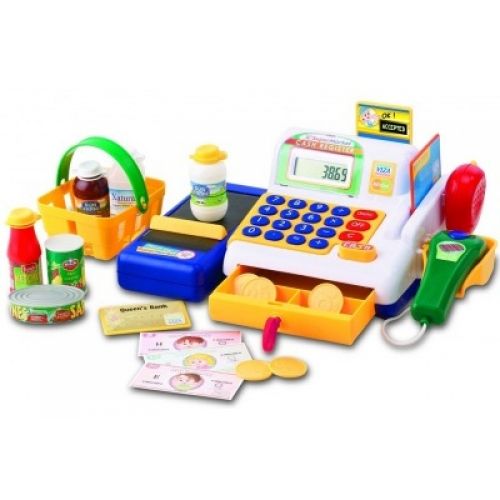 Ця яскрава каса із безліччю функцій для рахунку грошей та обслуговування ігрових покупців неодмінно сподобається дитині.
