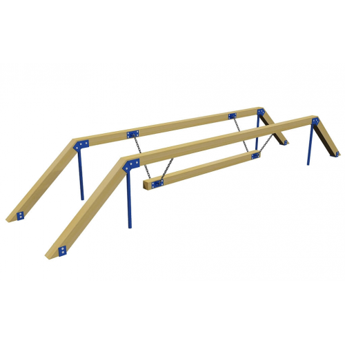Для виробництва використовуються високоякісні дерев'яні дошки та металеві елементи. Щоб отримати стійкий насичений колір, компанія-виробник покриває дерево кількома шарами якісної німецької фарби, а метал - елітною глянцевою фарбою іспанського виробництва. Завдяки такому підходу, гойдалка встоїть перед будь-якими погодніми умовами. Перед фарбуванням всі частини грунтуються.