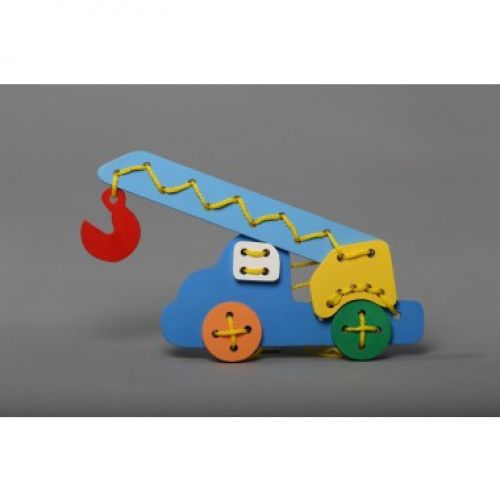 Оригінальна шнурівка у вигляді автокрана, яка особливо сподобається хлопчикам. Виготовлено з екологічно чистої деревини з використанням безпечних фарб.