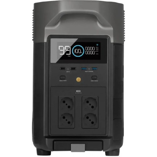 Керуйте станцією дистанційно через Wi-Fi або Bluetooth за допомогою мобільного застосунку EcoFlow. Пристрій оснащений дисплеєм, 4 розетками AC 230 В, 4 портами USB-A, 2 портами USB-C (по 100 Вт), виходами DC та Anderson.