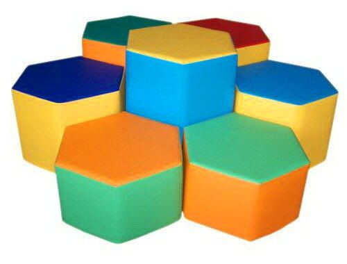 Виріб у вигляді яскравого різнобарвного м'якого комплекту з 7 модулів-шестикутників столу і пуфів. Розмір столу 60х60 см, пуфа 60х30 см.