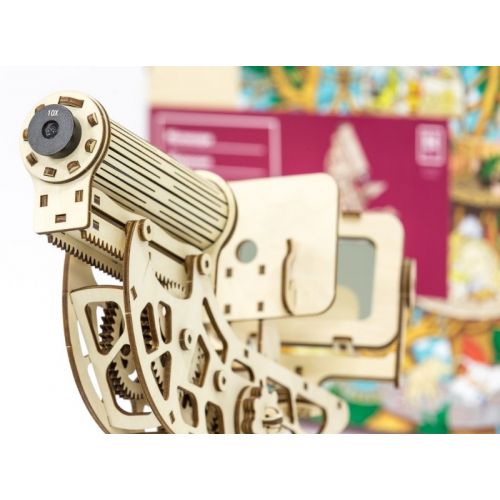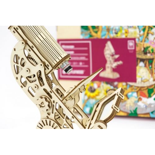 Виріб представлено механічним пазлом у вигляді мікроскопу. Деталі конструктора з'єднуються без клею за допомогою воску в оригінальний об`ємний дерев'яний виріб.