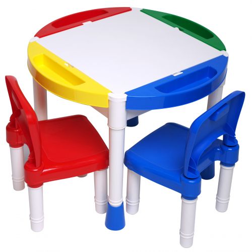 "Ігровий центр" являє собою конструктор, який збирається в набір дитячих меблів з деталей набору. Набір складається зі столика для ігор, 2-ох стільчиків і 0,5кг ЛЕГО-сумісних деталей.
