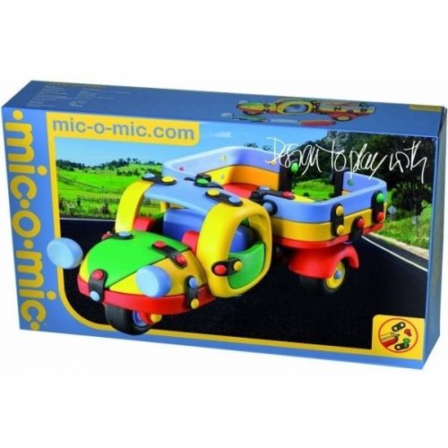 Конструктори MIC-O-MIC відрізняються яскравим дизайном і великою кількістю різноманітних моделей. Приємні на дотик деталі легко поміщаються в руку малюка. Деталі конструктора складаються з окремих текстурованих частин, що з'єднуються між собою спеціальними закліпками і кліпсами. Дитині належить зібрати триколісну старовинну вантажівку з 43 основних деталей.
