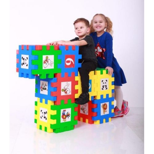Виріб у вигляді набору яскравих різнокольорових великих блоків-пазлів із зображеннями різних тваринок. З блоків можна створювати безліч різних фігур. Конструктор просто і легко складати. Можна використовувати вдома і на вулиці. Гра розвиває логіку, уяву, мислення, творчість.