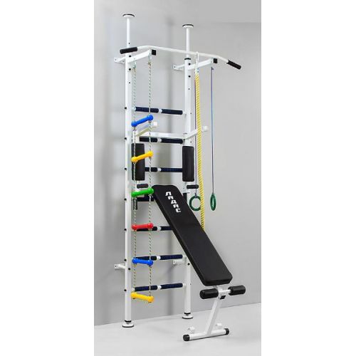 Заняття на тренажері сприяють підвищенню спортивної активності, укріпленню м'язів і розвитку координації рухів. Тренажер дозволяє виконувати розвивальні рухи в ігровій формі. Наявність в тренажері поперечини з металу з пластиковим покриттям, турніка, каната з натурального матеріалу, навісної драбинки дозволяє дитині зручно і безпечно займатись на тренажері. Всі металеві деталі з полімерним покриттям.
