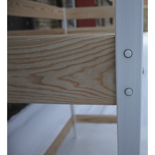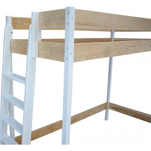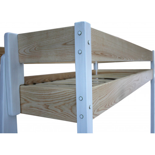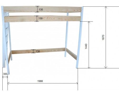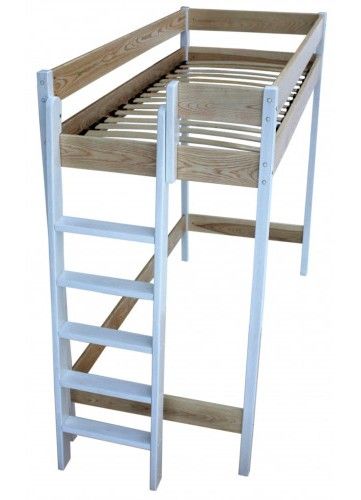 Виріб у вигляді дитячого ліжка-горища. З похилою драбинкою і широкими сходинками. Під ліжком можна створити ігрову або навчальну зону. Ліжко в класичному стилі, з простими формами і компактними розмірами.