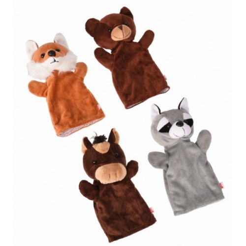 Симпатичні персонажі у вигляді милих тваринок для лялькового театру на руках: віслюк, ведмедик, єнот, лисиця, дракон. Зроблені з якісної тканини. Для дітей від 3 років.