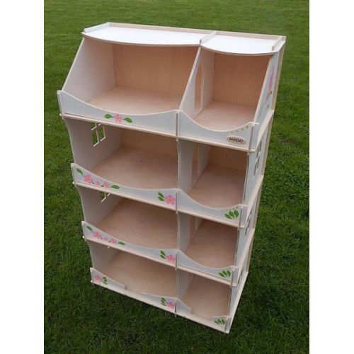 Виріб у вигляді збірного лялькового будиночка з 4 поверхами. Деталі з'єднуються між собою в пази. Будиночок легко і швидко збирається. Це гарний будиночок для ляльок, а також шафа для дитячих речей. Прекрасний подарунок для будь-якої дитини і відмінний меблевий аксесуар.