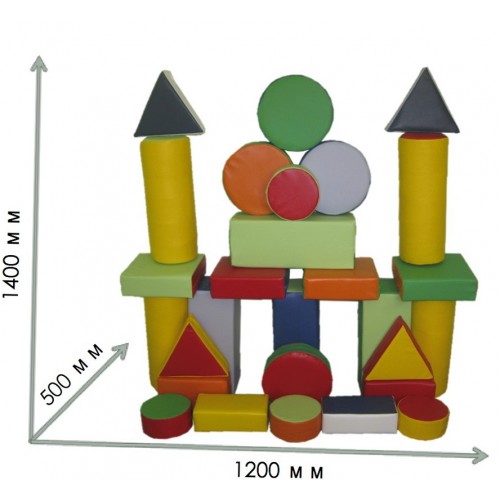 Виріб у формі яскравого різнобарвного конструктора різної геометричної форми. Виріб складається з 28 елементів. Модель яскрава, м'яка і легка.