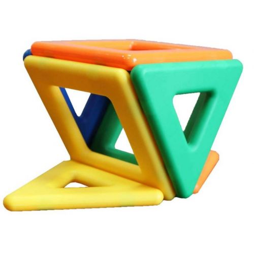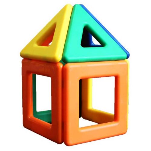 Виріб у вигляді конструктора з яскравими різнобарвними деталями - квадратами і трикутниками. Деталі одночасно є брязкальцями для найменших дітей. Елементи безпечні, без гострих кутів. Конструктор розвиває дрібну моторику, фантазію, координацію, пам'ять, просторове мислення.