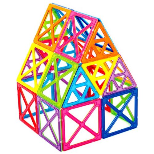 Він складається з супер квадратів і супер трикутників. Всі звичні споруди стануть набагато більшими! Набір складається з 30 деталей: 12 супертрикутників і 18 суперквадратів. В один великий квадрат поміщаються 4 звичайних, а в один великий трикутник 4 звичайних трикутника. Тільки уявіть, що всі стандартні споруди Вашого малюка збільшаться в розмірі в чотири рази!