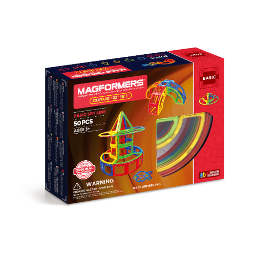 Набір складається з яскравих, різнокольорових елементів у вигляді дуги, за допомогою яких можна створювати складні конструкції.