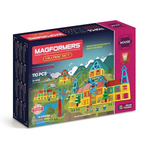 Крім різноманітних будівельних аксесуарів, в набір «Magformers Village Set» включені базові елементи Магформерс, незамінні при будівництві - квадрати і суперквадрати, два види трикутників, напіварки і новий елемент - коло, яке стане в нагоді при будівництві годинникової вежі або для вікна мансарди.