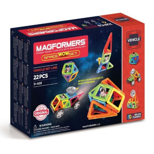 Набір створений на основі супер-популярного набору Magformers Wow Set. Але він зовсім не покажеться Вам нудним - крім уже знайомих деталей в нього входять нова фігурка космонавта, антена і навчальні картки на космічну тему.