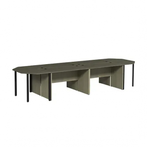Комплект столів для засідань складається з 4-х прямих письмових столів та 2-х кутових заокруглених столів. Виготовлений з ламінованої ДСП товщиною 18 мм, всі елементи оклеєні ПВХ-стрічкою (1 мм для стільниць та 0,5 мм для інших частин). Використовуються якісні кріплення, такі як єврогвинти та мініфікси, що дозволяють багаторазове збирання без пошкодження. Столи мають отвори для проводів офісної техніки з заглушками.