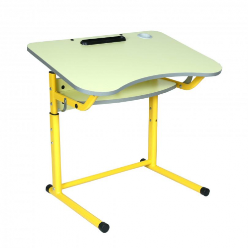 Дерев'яні елементи із ламінованої ДСП (товщина 16 мм), обклеєні крайковою стрічкою з ПВХ. Стільниця ергономічної форми, має заокруглені кути, пенал для книжкової підставки та отвір для стакану (діаметр 60 мм), кути нахилу 0°, 3°, 5°, 7°, 9°, 12°, 14°, 16°.
