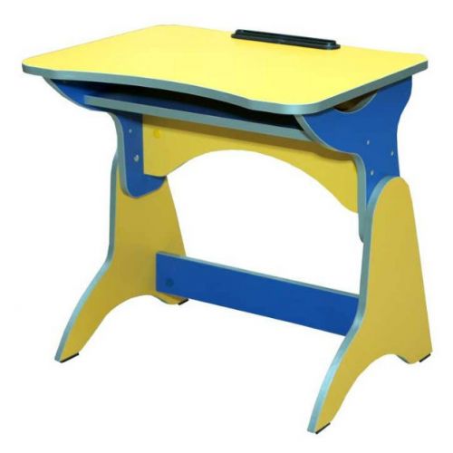 Парта виготовлена з ДСП, регулюється по висоті і підходить для дітей 1-3 зростової групи.