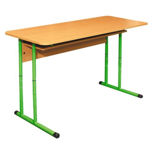 З полицею, для зростових груп № 4, 5, 6, розмір 1200х500х640-760 мм. Виріб на металевому каркасі, покриття нанесене напиленням порошкових полімерних матеріалів зеленого, сірого або чорного кольорів, ДСП ламінована, ПВХ-1, 0, два заокруглення.
