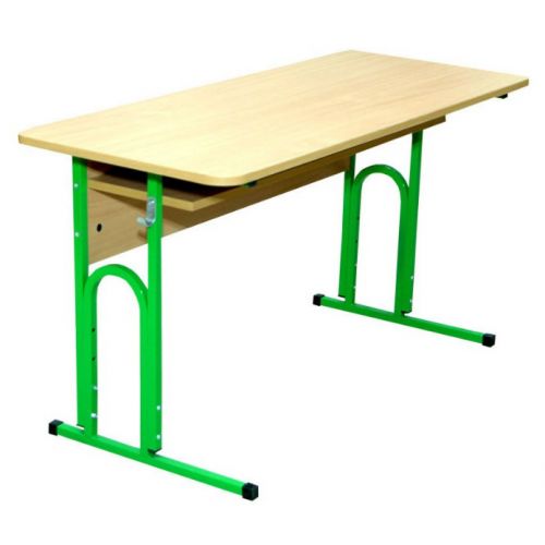 Двомісний учнівський стіл з полицею розроблено з можливістю регулювати висоту для зростових груп №4-6 (зріст учня 145-175 см).