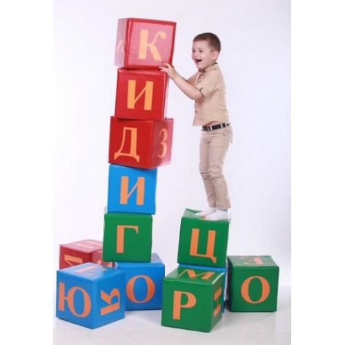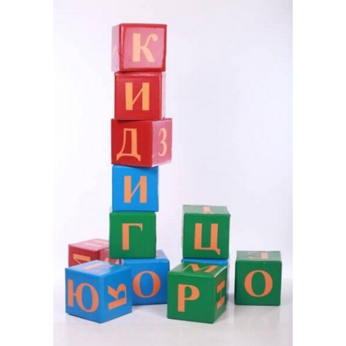 Виріб у вигляді яскравого модульного набору з 12 кубиків з 72 літерами української абетки на липучках і замочках для вивчення слів. На замовлення можна виготовити кубики з літерами англійської і російської абетки.