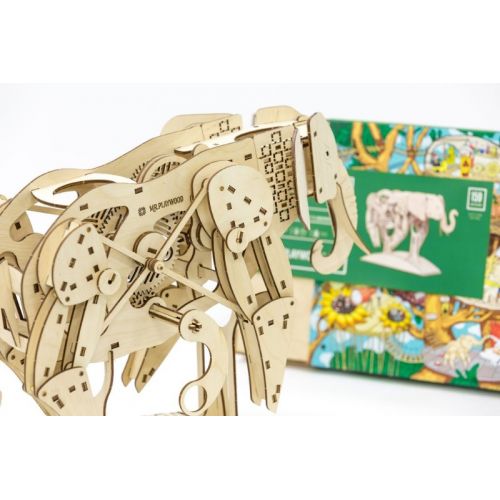 Виріб представлено механічним пазлом у вигляді слона. Деталі конструктора з'єднуються без клею за допомогою воску в оригінальний об`ємний дерев'яний виріб.
