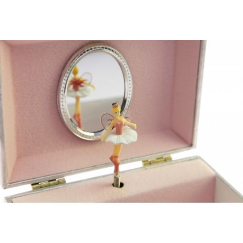 Музична скринька «Ельф» німецького виробника іграшок goki має одне відділення для зберігання скарбів та дівочих секретів. Зовнішня поверхня скриньки покрита перламутром і прикрашена орнаментом з польових квітів та метеликів. Внутрішня оббивка музичної скриньки виконана в ніжно-рожевих тонах. У скриньці маленька принцеса знайде дзеркальце і чарівного ельфа, що ніби літає на поляні серед польових квітів. Скринька закривається на маленький золотий замочок.