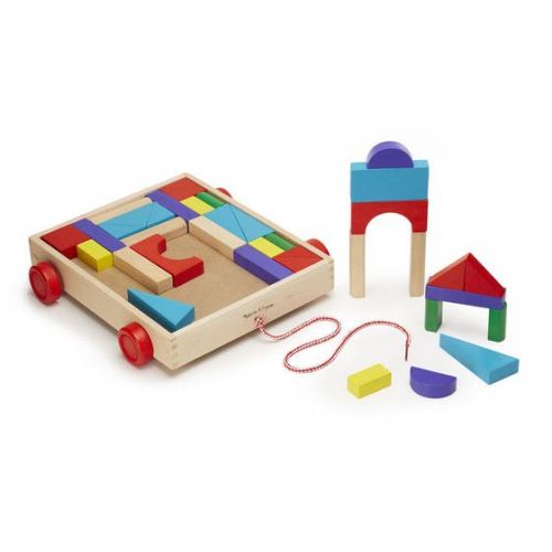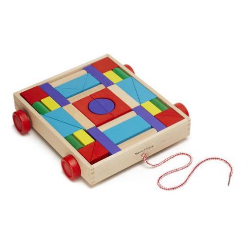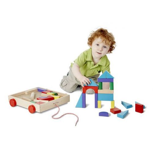 Виріб представляє з себе дерев'яні кубики різного кольору і форми. З симпатичним возиком для гри і зберігання блоків.