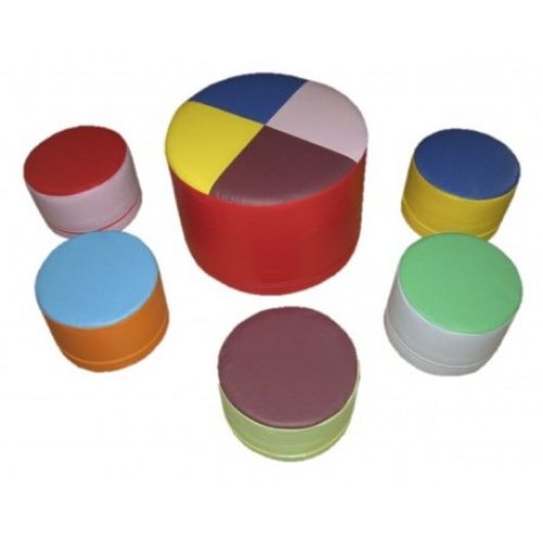 Виріб представлений яскравим набором з 6 елементів: столу і 5 пуфів. Розмір столу 50х35 см, пуфа 30х20 см.