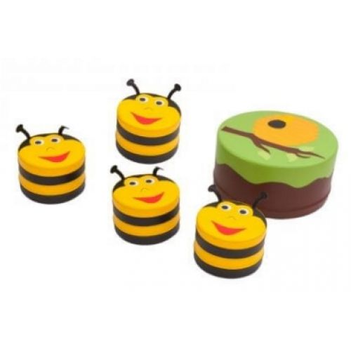 Виріб у вигляді яскравого набору з 5 м'яких модулів у формі округлої бджілки (столика і 4 стільчиків). З аплікацією, блискавкою, липучками.