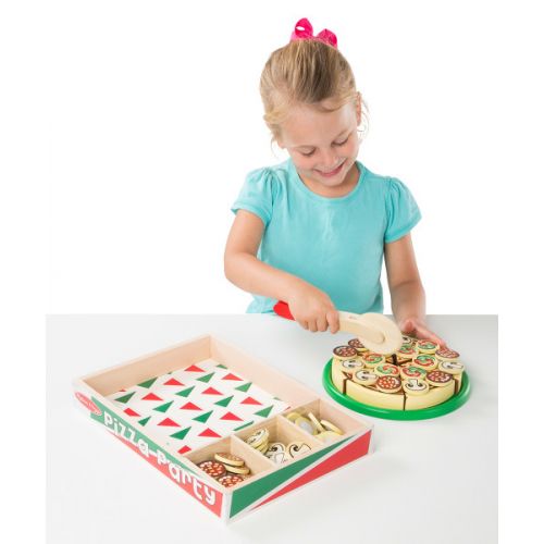 Набір Піца являє собою піцу, розрізану на 6 частин і цілий набір всіляких інгредієнтів для приготування смачної піци. Прекрасна іграшка для улюбленої дитячої гри чаювання. Набір складається з 63 елементів, шухлядки для зберігання піци і інгредієнтів.
