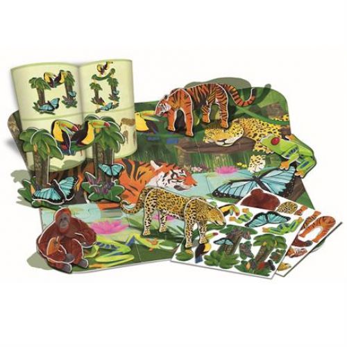 Виріб у вигляді яскравого набору з 9 об'ємних великих деталей-пазлів і 6 фігурок диких тварин. Фігурками можна грати окремо. Набір розвиває логіку, уяву, пам'ять, творчість, мислення.